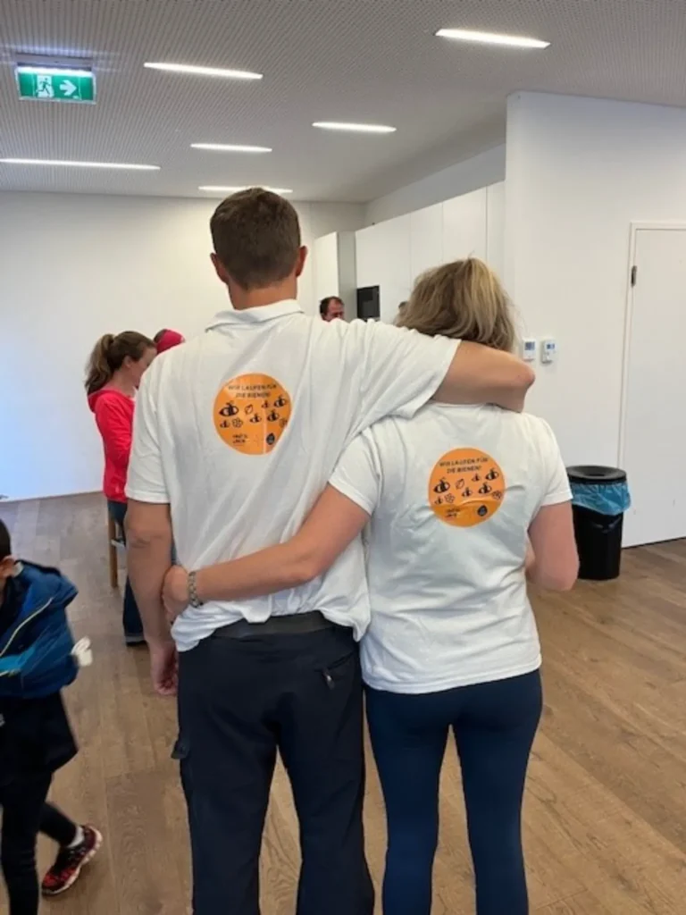 Jede gelaufende Runde von 750m rettet 15m2 Bienenweide. Da machen wir natürlich mit!